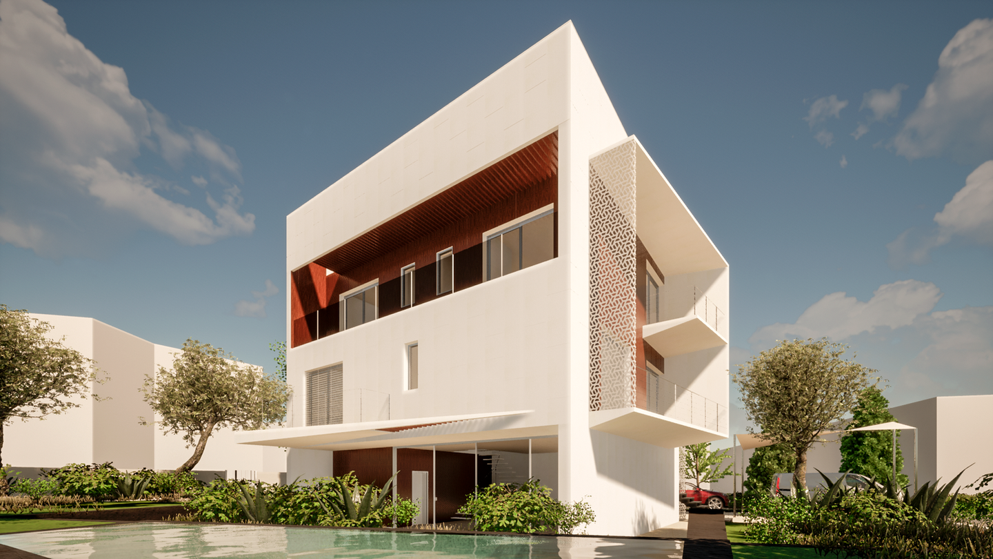 L'elemento unitario base, il cubo, scomposto e rimodulato per accogliere la luce, il sole, le ombre, il vento: la vita della sua famiglia, in un equilibrio bioclimatico col proprio intorno disegnato.